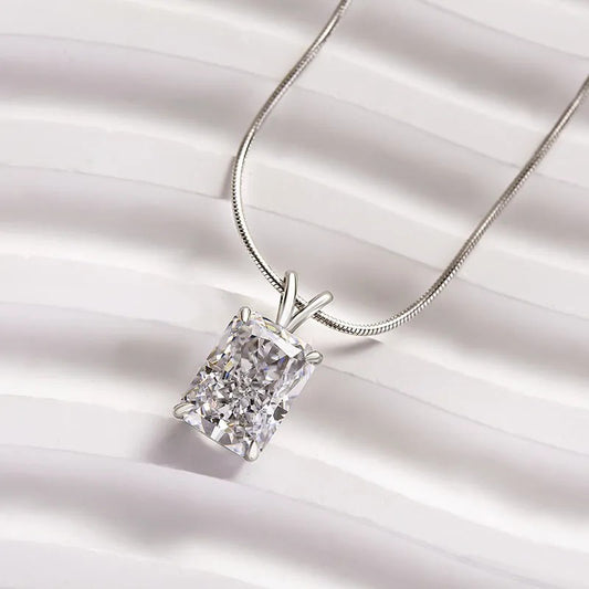 5.0 Carat Noble Crushed Ice Radiant Cut Pendant Necklace In Sterling Silver