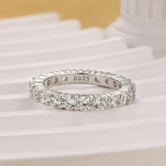 Eternity Round Cut Simulated Diamond Women's Wedding Band In Sterling Silver