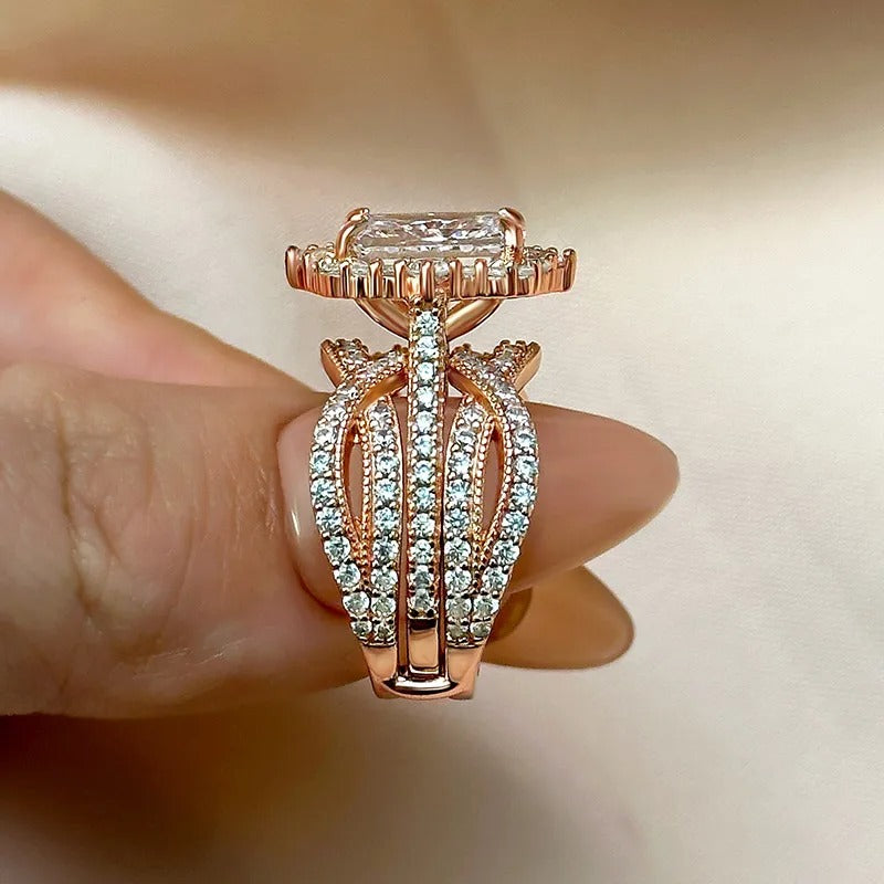 Vintage 3.5 Carat Halo Radiant Cut Insert Wedding Ring Set Travel Ring For Women In Sterling Silver